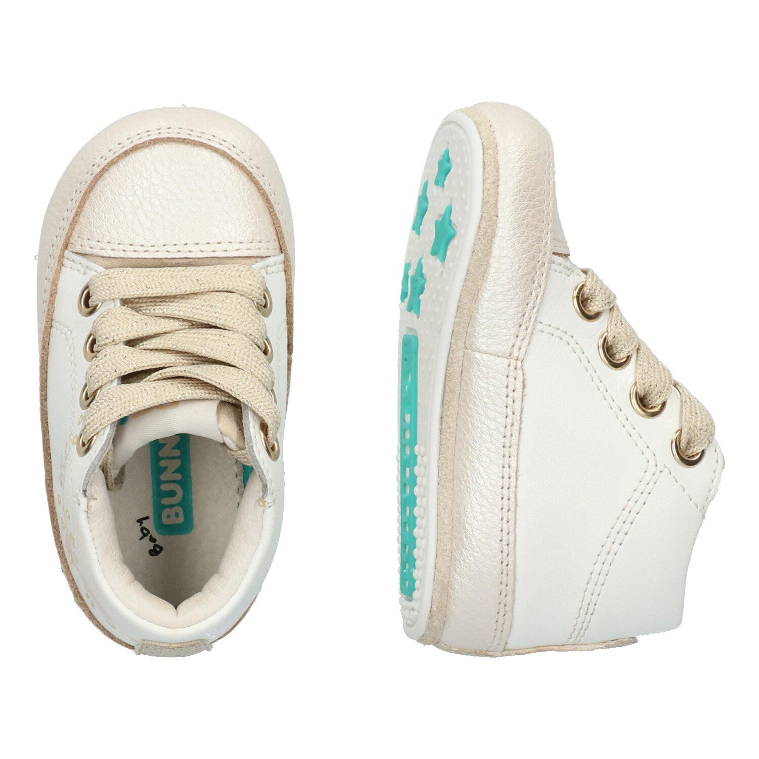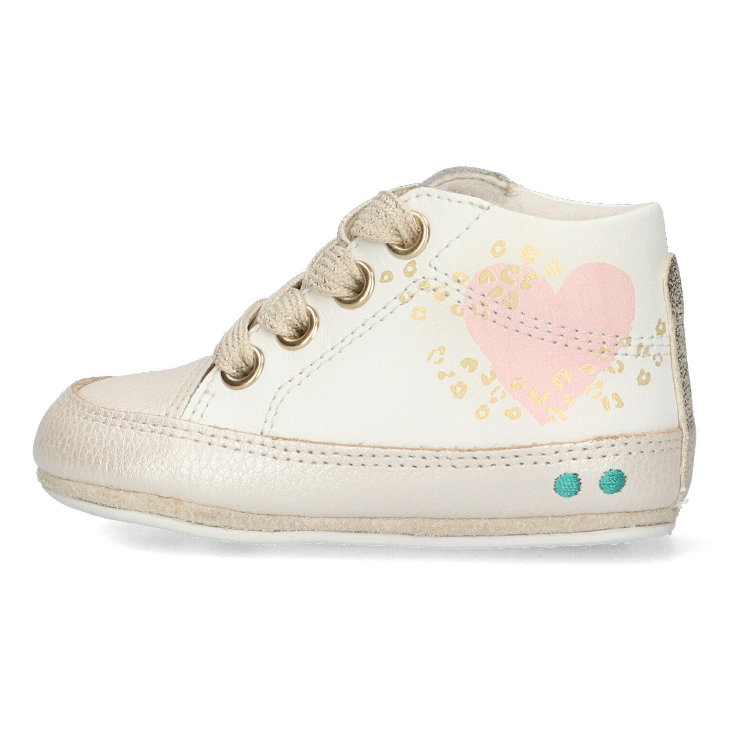 De babyschoentjes zijn gemaakt van leer. De combinatie van kleuren geeft de babyschoentjes een schattige look. Met de veters trek je de schoentjes gemakkelijk aan bij je kleintje en zorg je ervoor dat ze goed vast zitten.