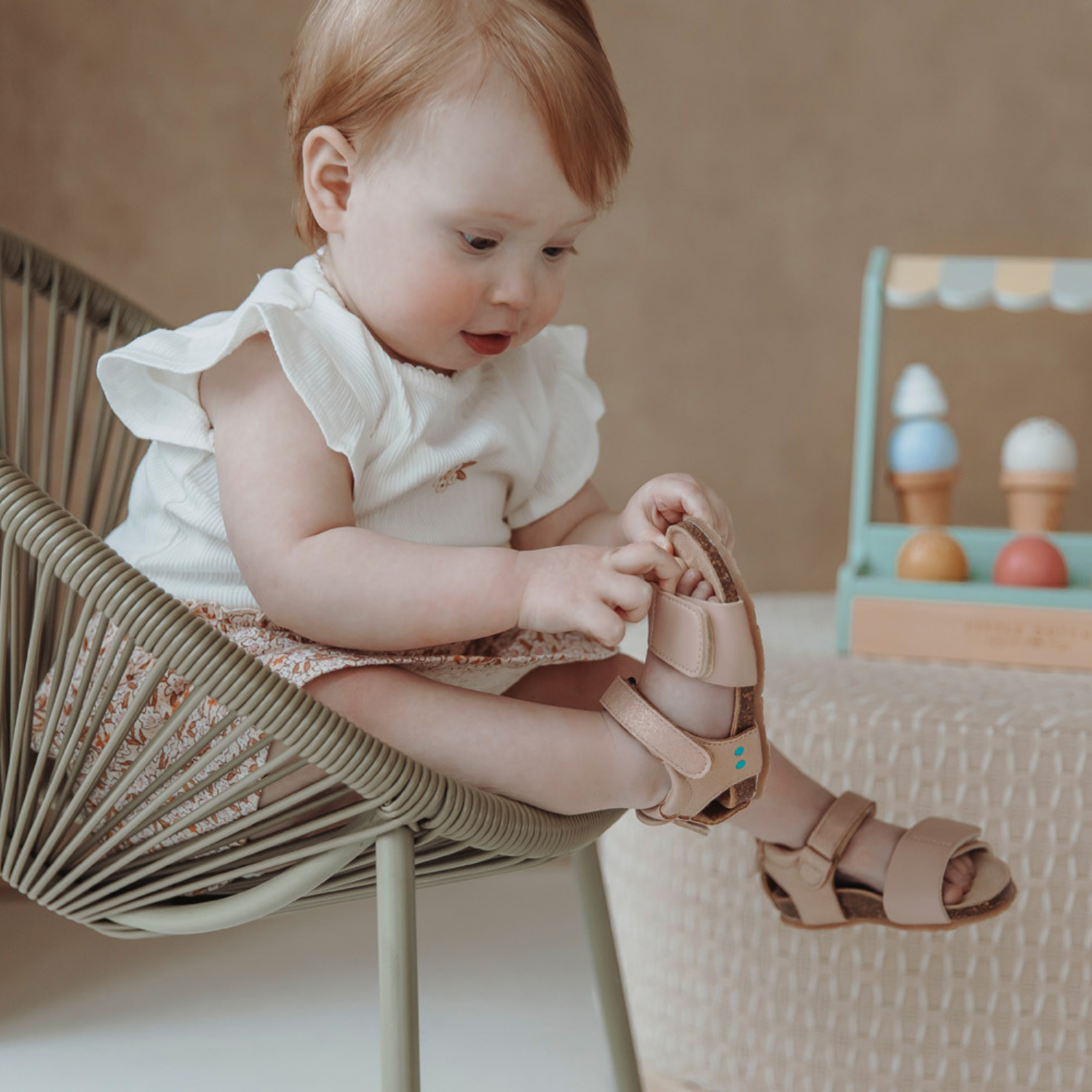 De Britt Beach meisjessandalen laten jouw (b)engel stijlvol de zomer in gaan. De sandalen zijn gemaakt voor kindjes die al goed zelfstandig kunnen lopen.