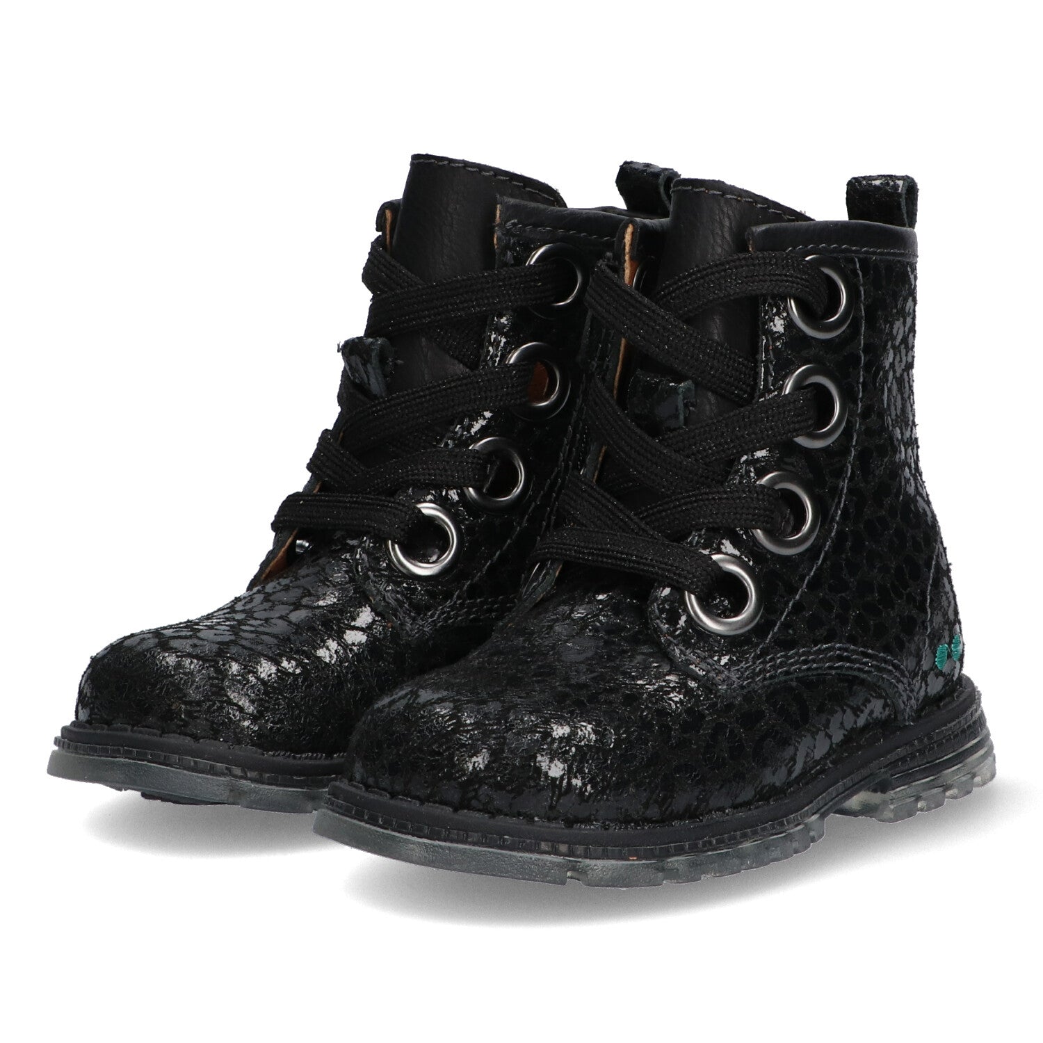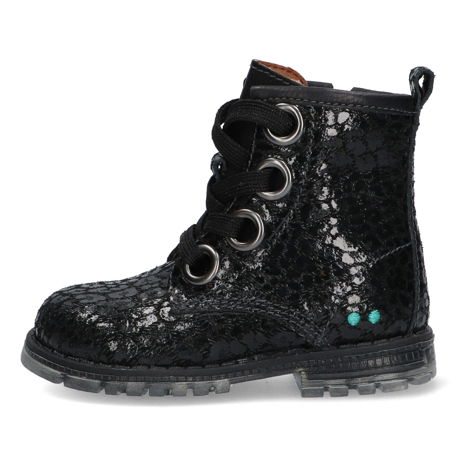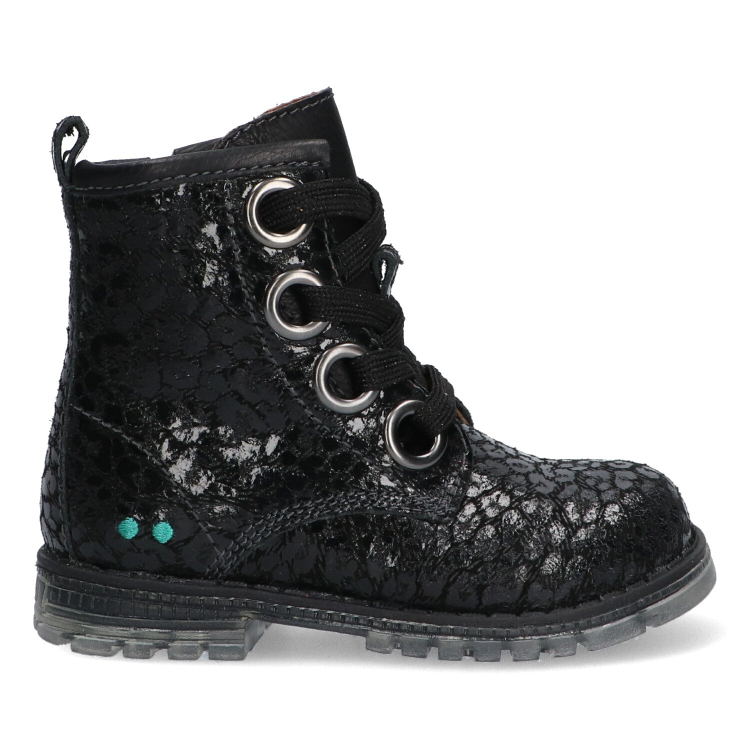 Deze biker boots voor meisjes zijn zwart van kleur met een glimmende leopard print. Door de zwarte veters van deze trendy laarsjes zitten glitters. Aan de zijkant van de laarsjes zit een rits, zodat ze snel aan en uit kunnen. De laarsjes staan super stoer onder rokjes en jurkjes, maar ook bij een broek staan ze hartstikke leuk. Ze zijn onmisbaar in de najaarsgarderobe van jouw kleintje!