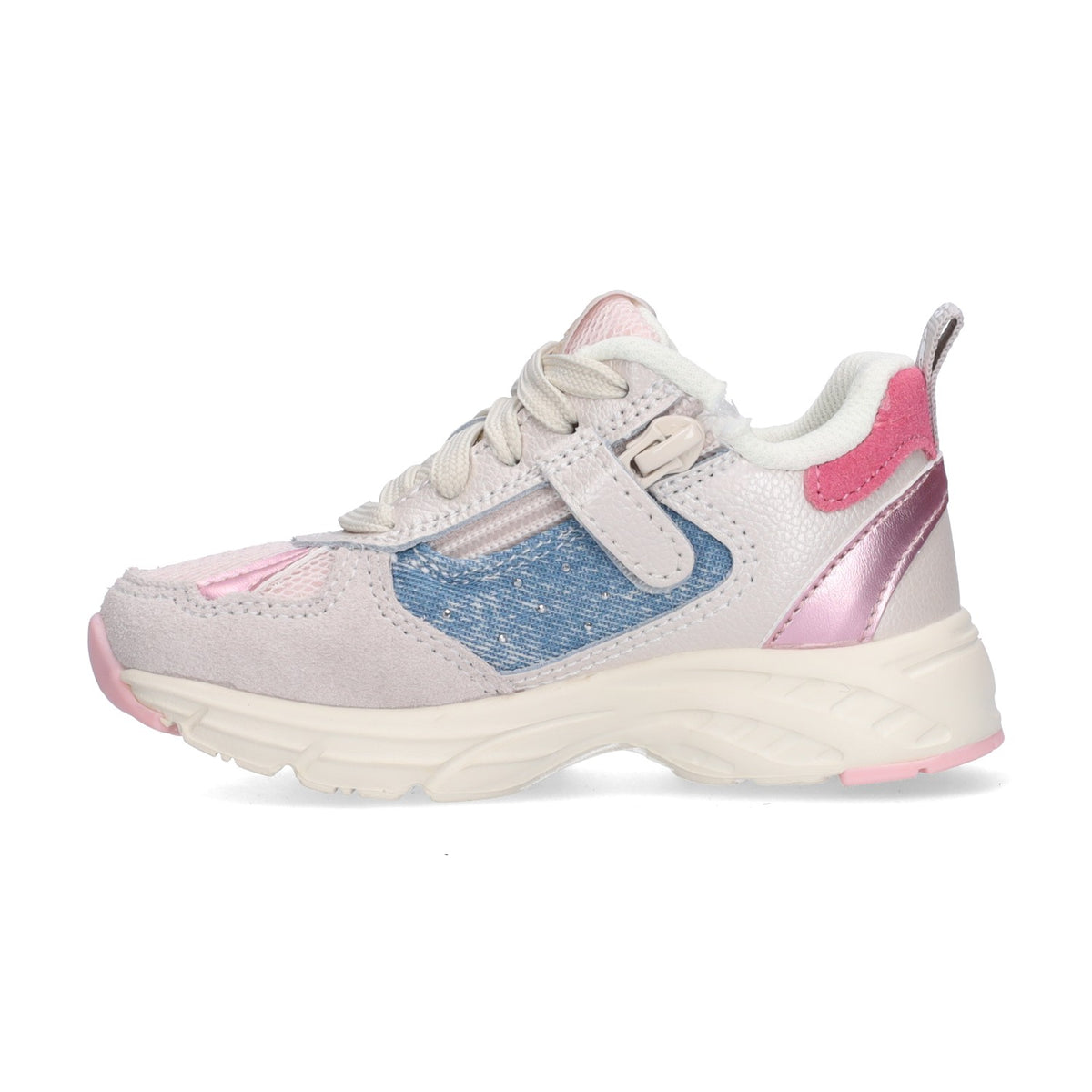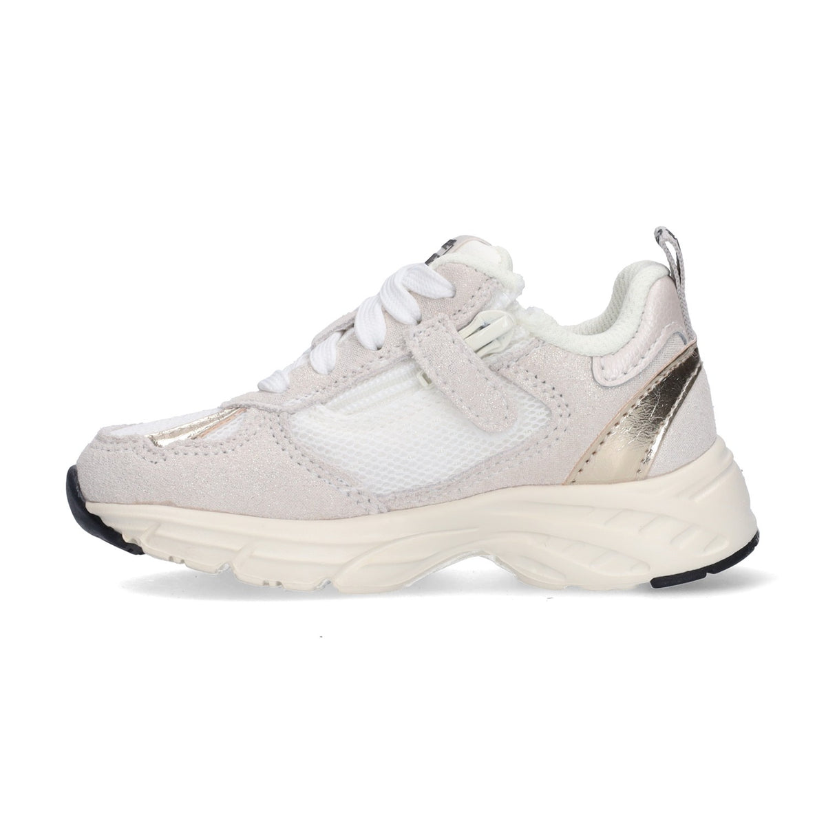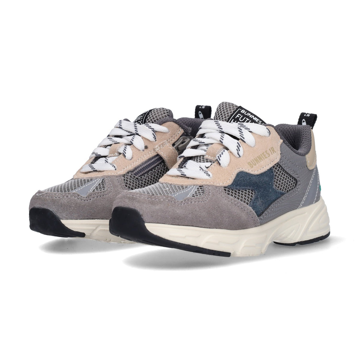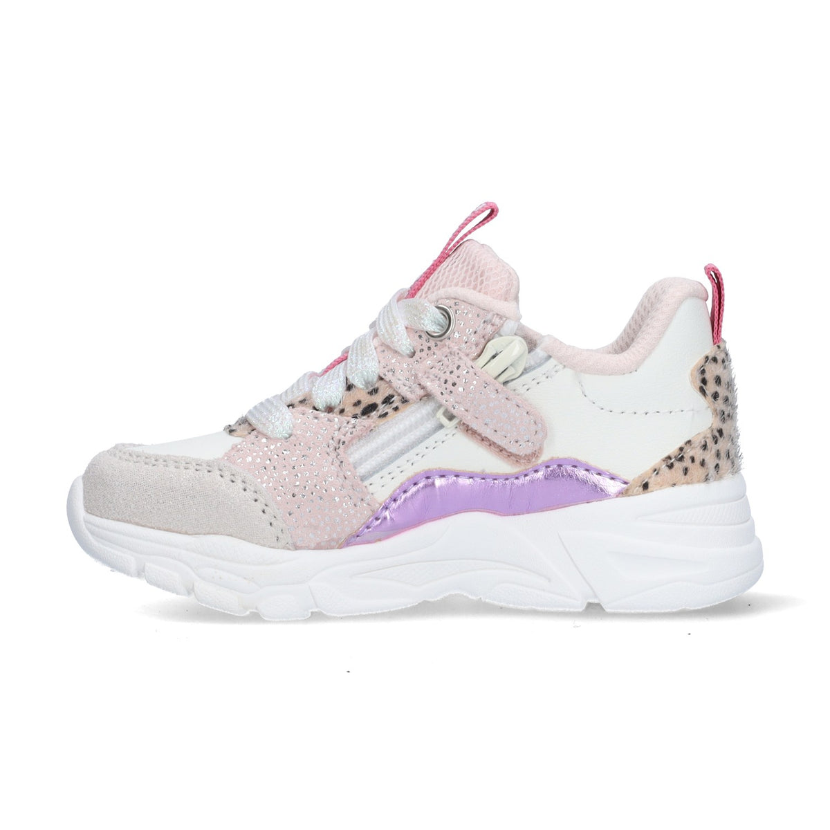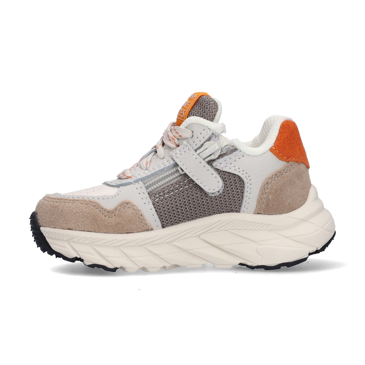 De lage kindersneakers zijn een echte blikvanger door het gebruik van verschillende frisse kleuren. De stoere sneakers zijn gemaakt van een mix van leer en suède. Met de rits- en veters bevestig je de schoentjes stevig aan de voetjes van je kindje. Met deze sneakers is jouw kindje een ware superster!