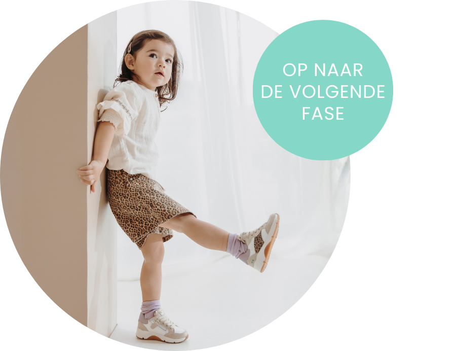 Kan jouw kleintje moeiteloos achteruit en zijwaarts lopen? Dan is goede ondersteuning nÃŗg belangrijker! In deze fase maken kindervoetjes complexe bewegingen, wat vraagt om flexibele, maar stevige schoenen.