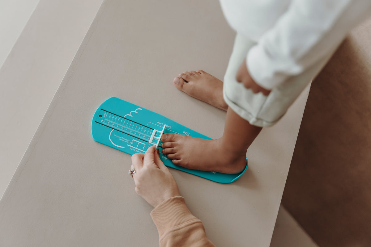 Altijd de juiste maat met behulp van onze voetjesmeter. Meet elke 3 maanden de voetjes van jouw kleintje.